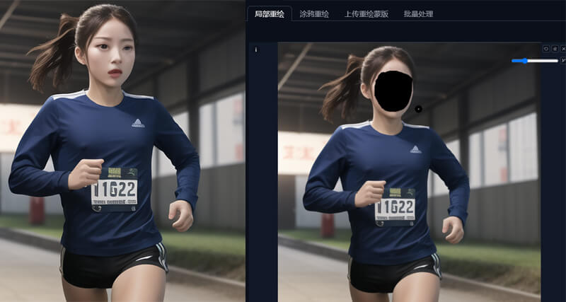 这样我们就对女孩面部进行了局部重绘,但不会改变我们涂抹区域以外的图像。