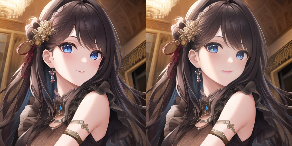 第一张是未调用面部修复,第二张调用面部修复,调用面部修复二次元女孩的脸会变的失调。