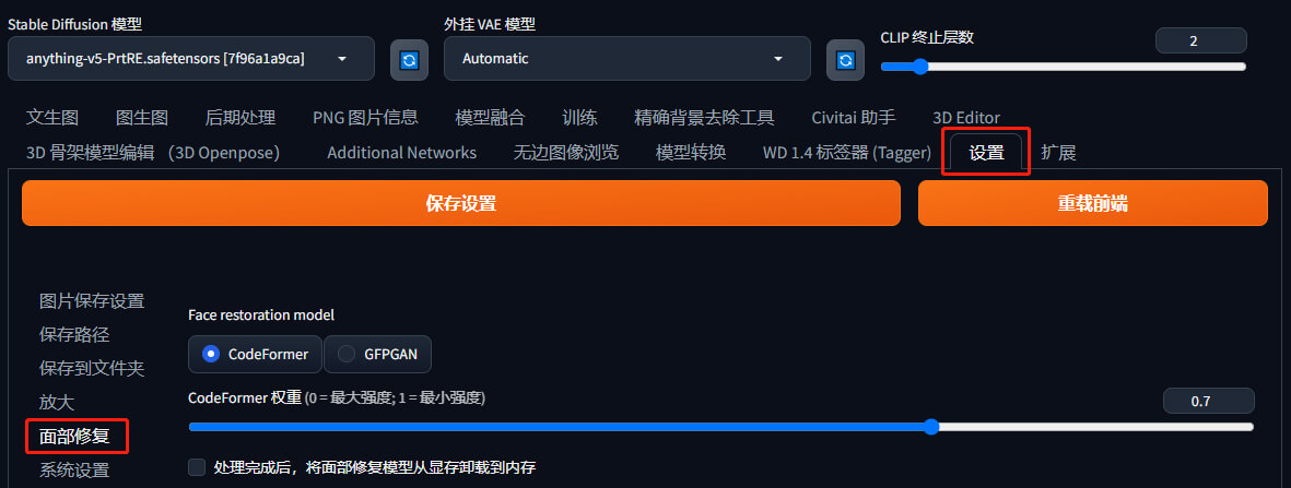基本就是2种模型CodeFormer和GFPGAN,选择其中一个就可以。