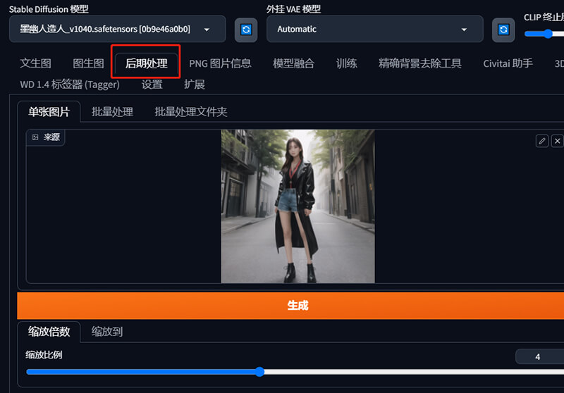 而文生图可以直接用高分辨率生成,但很消耗电脑资源,这时我们就可以使用后期处理功能。