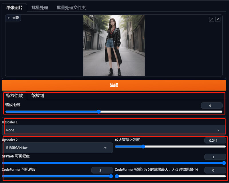 Upscaler 2面部修复放大算法选择:同Upscaler 2一样。