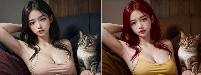 比如我这里想要把头发改成红色、衣服变成黄色