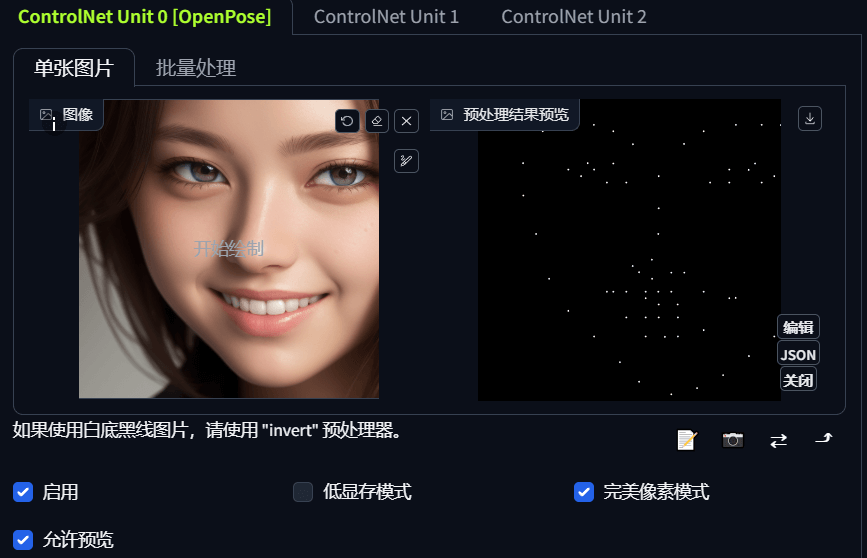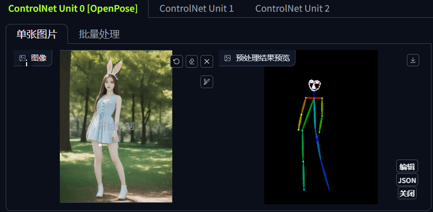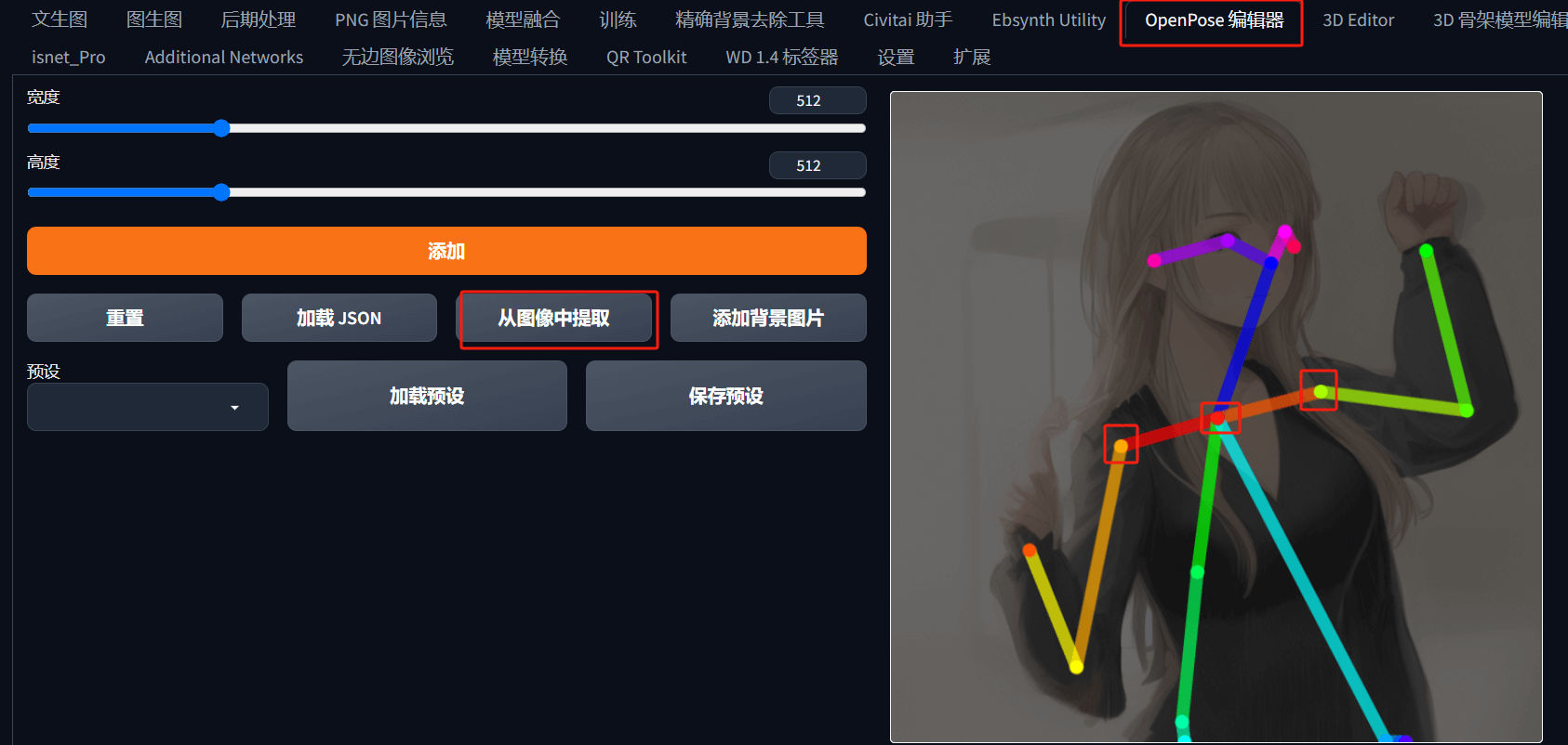 如果我们从图像中提取的骨架图不满意,我们可以借助OpenPose编辑器插件进行编辑修改