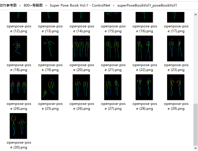 我们还可以直接使用制作好的骨架图进行姿势控制,大家有需要可以直接下面下载,有上千套成熟的骨架图,这里我也分享给大家使用: