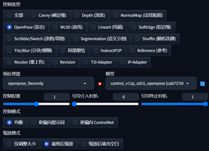 预处理器:openpose_faceonly,这里只会提取人物面部信息