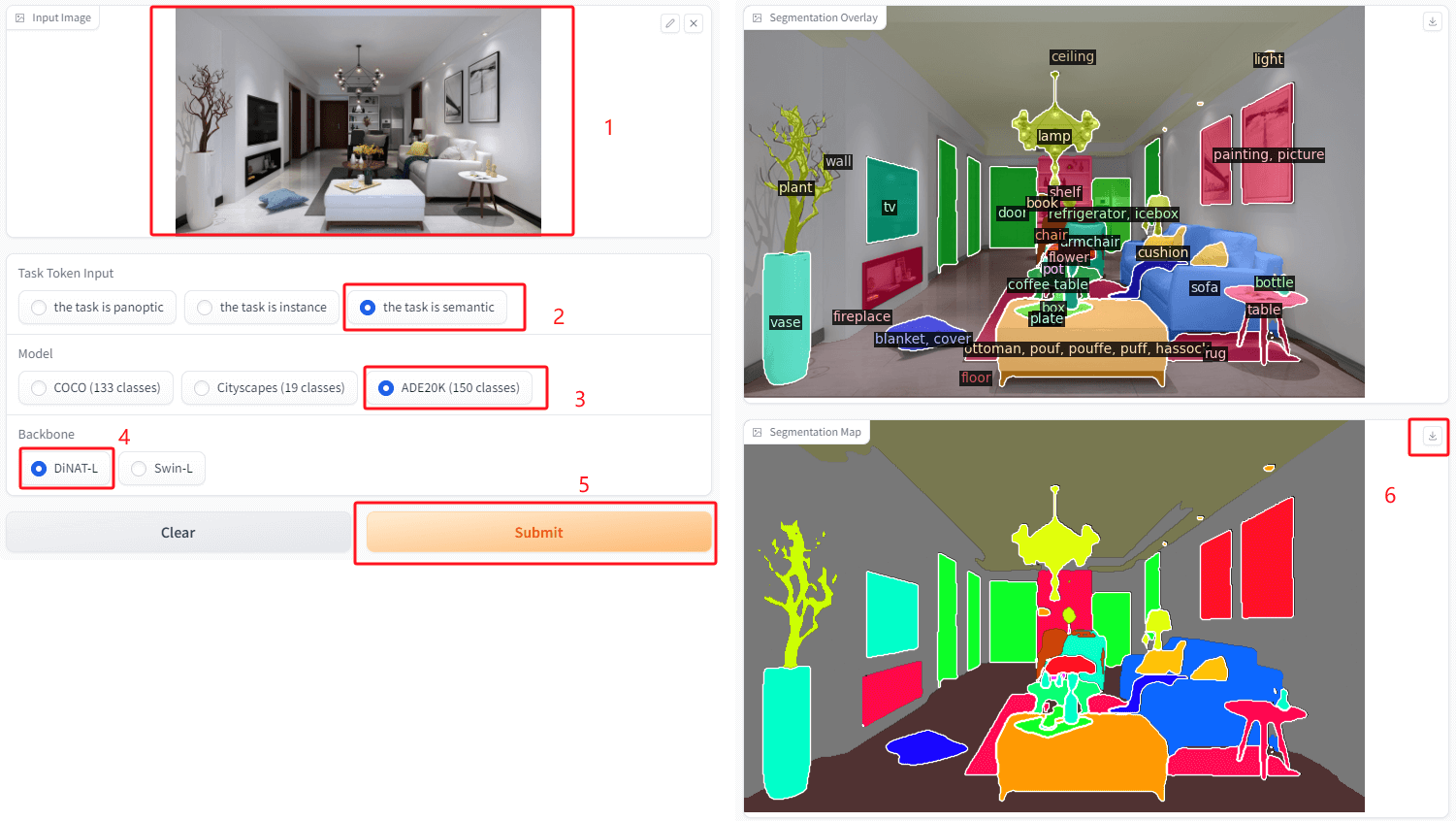 1. https://huggingface.co/spaces/shi-labs/OneFormer